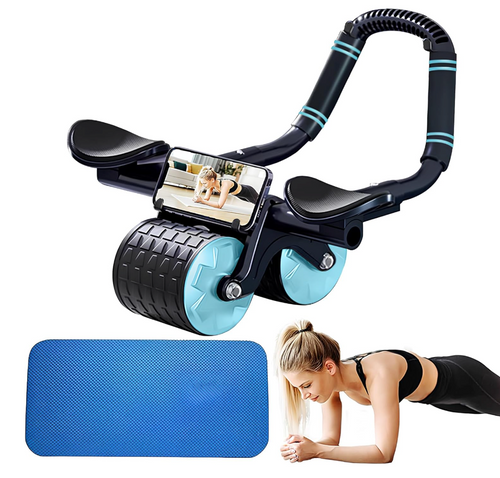 Rodillo abdominal con apoyabrazos, cronometro y alfombrilla para rodillas