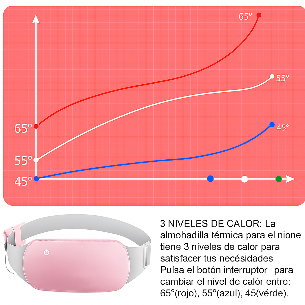 Recupera tu bienestar y vive tus días con más comodidad gracias al Cinturón calefactado para dolores menstruales y cólicos, tu mejor aliado en esos momentos del mes.