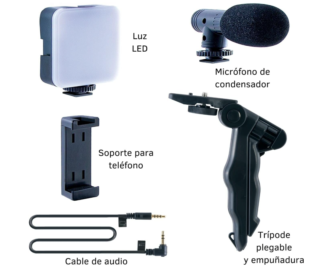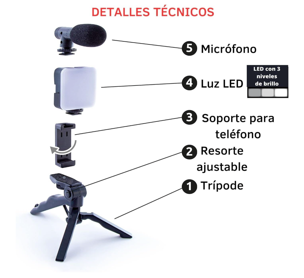 Convierte tu smartphone en un estudio de grabación con el Set 3 en 1 que incluye trípode, micrófono y luz LED. Diseñado para creadores de contenido, streamers y amantes de la fotografía y el vídeo, este kit te permite grabar con una calidad superior en cualquier lugar.